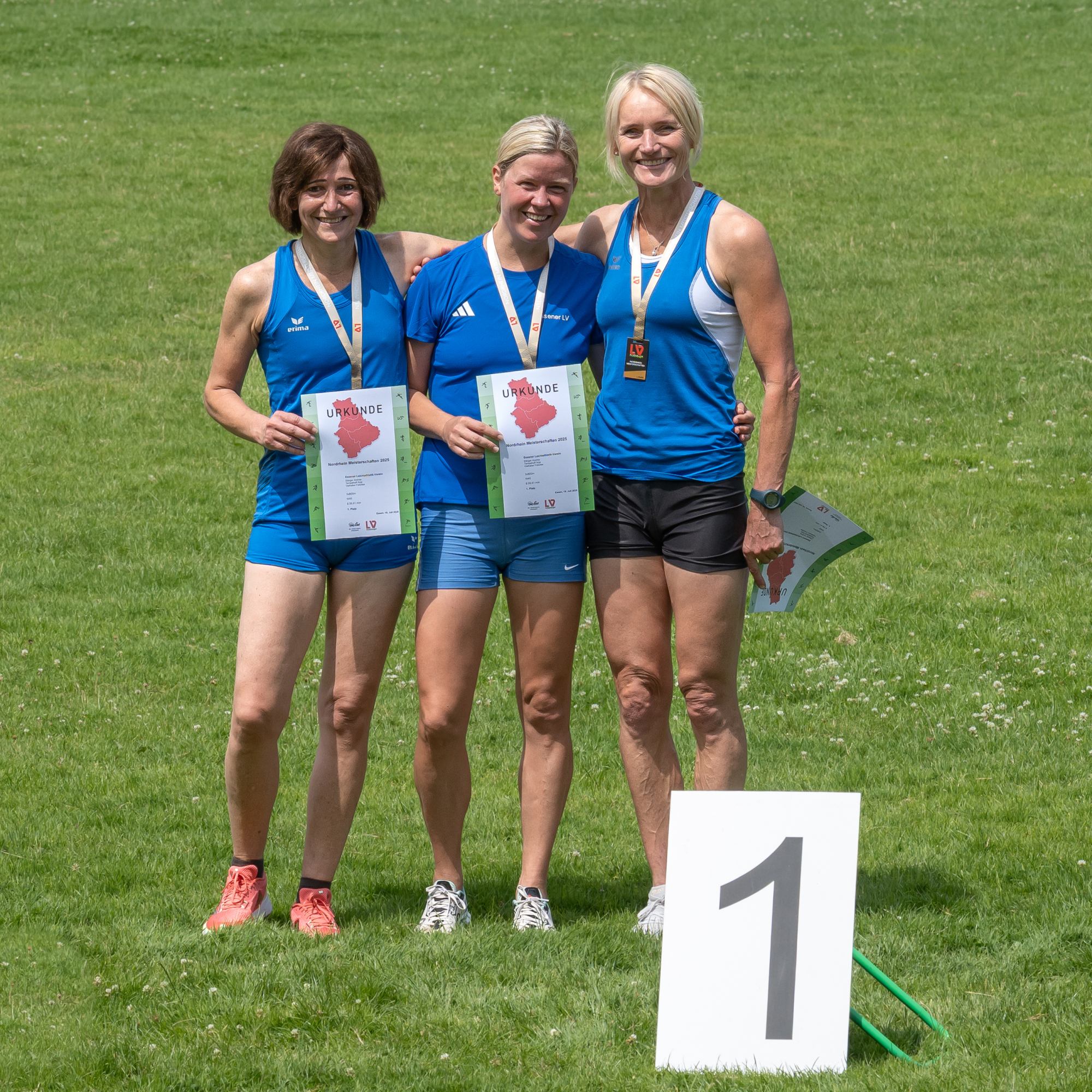 In der 3 x 800 m Staffel (W40) liefen Andrea Ellinger, Anja Tempelhoff und Felicitas Vielhaber auf Platz 1.